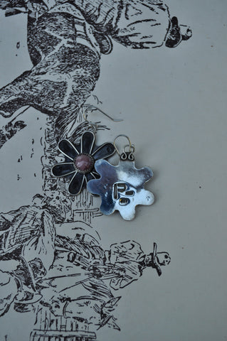 Rhodochrosite stone wrapped in sterling silver. Both earrings stamped with brand.