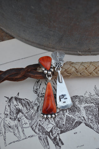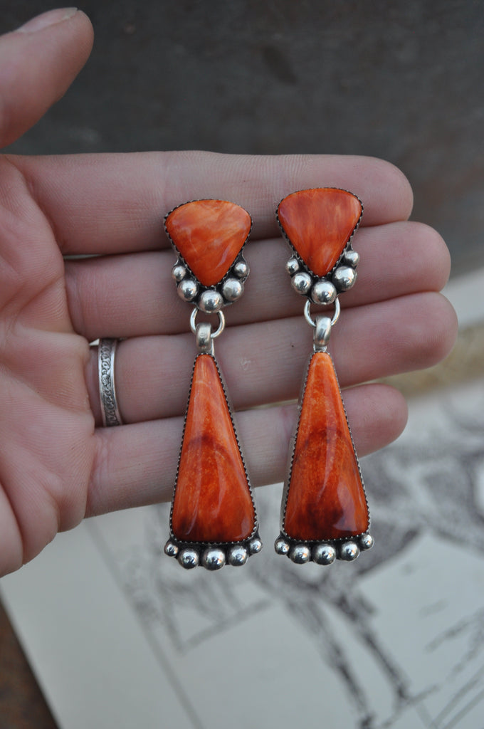 Spiny Oyster 2 stone earrings wrapped in sterling silver.
